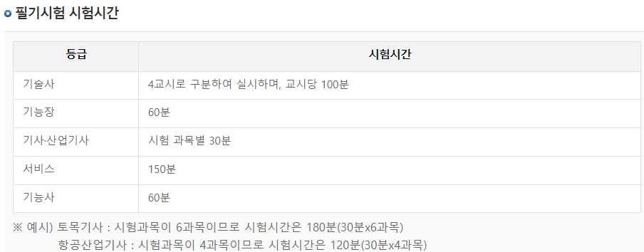 - ๊ธฐ์ฌ ์ํ์ ์ํ ๊ณผ๋ชฉ๋ณ 30๋ถ, ์ด 150๋ถ (์ฆ, 2์๊ฐ 30๋ถ)