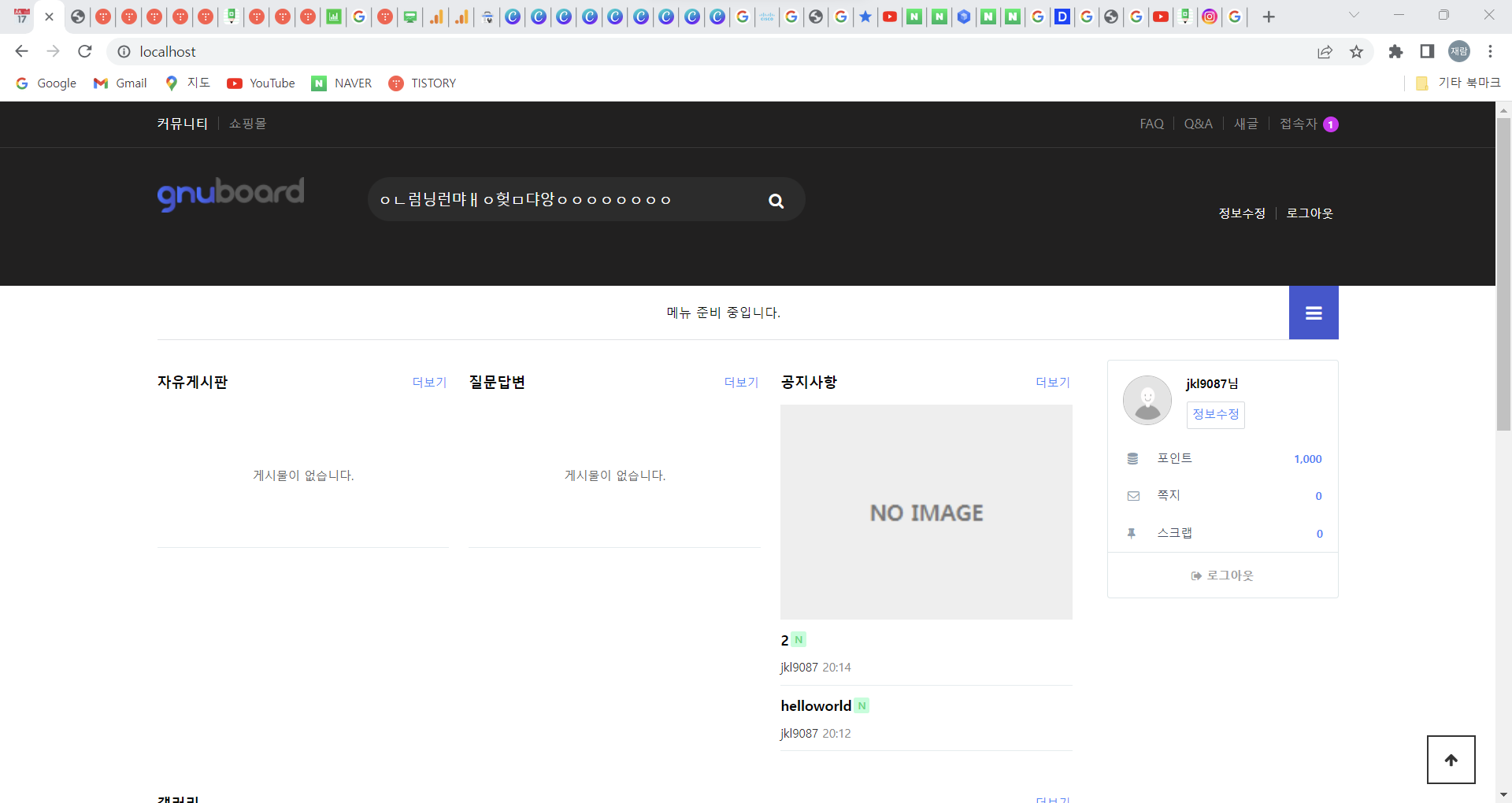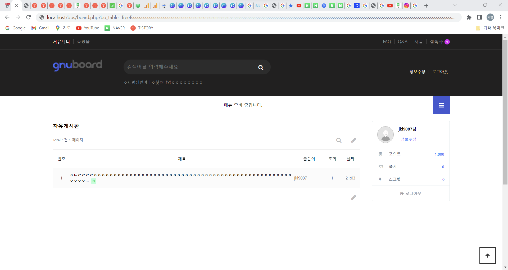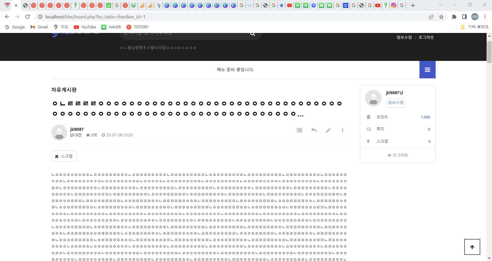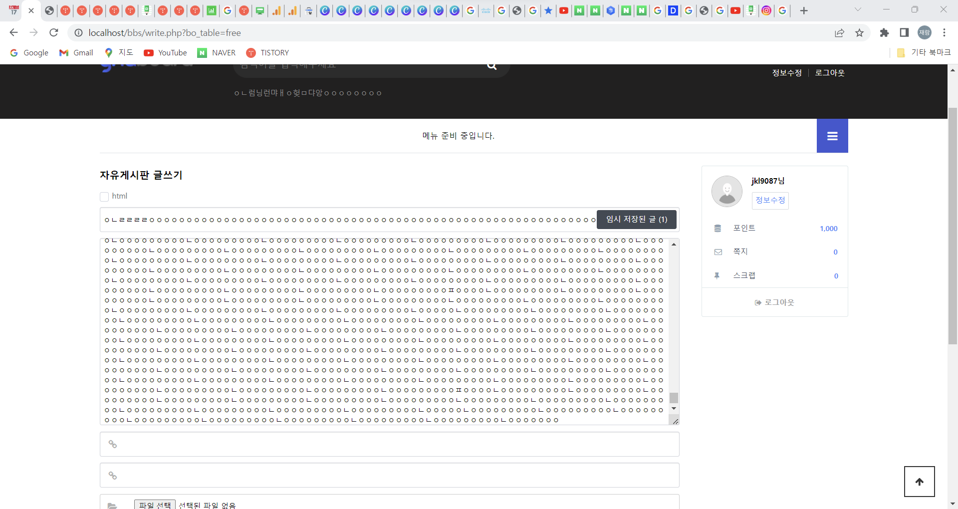 Step 4) ๊ฒ์๊ธ ์์ฑ ์ ๋๋์ ๋ฌธ์์ด์ ์ ๋ ฅํ์ฌ ์๋ฌ ํ์ด์ง๋ ์ค๋ฅ๊ฐ ๋ฐ์ํ๋์ง ์ ๊ฒ // ์ํธ